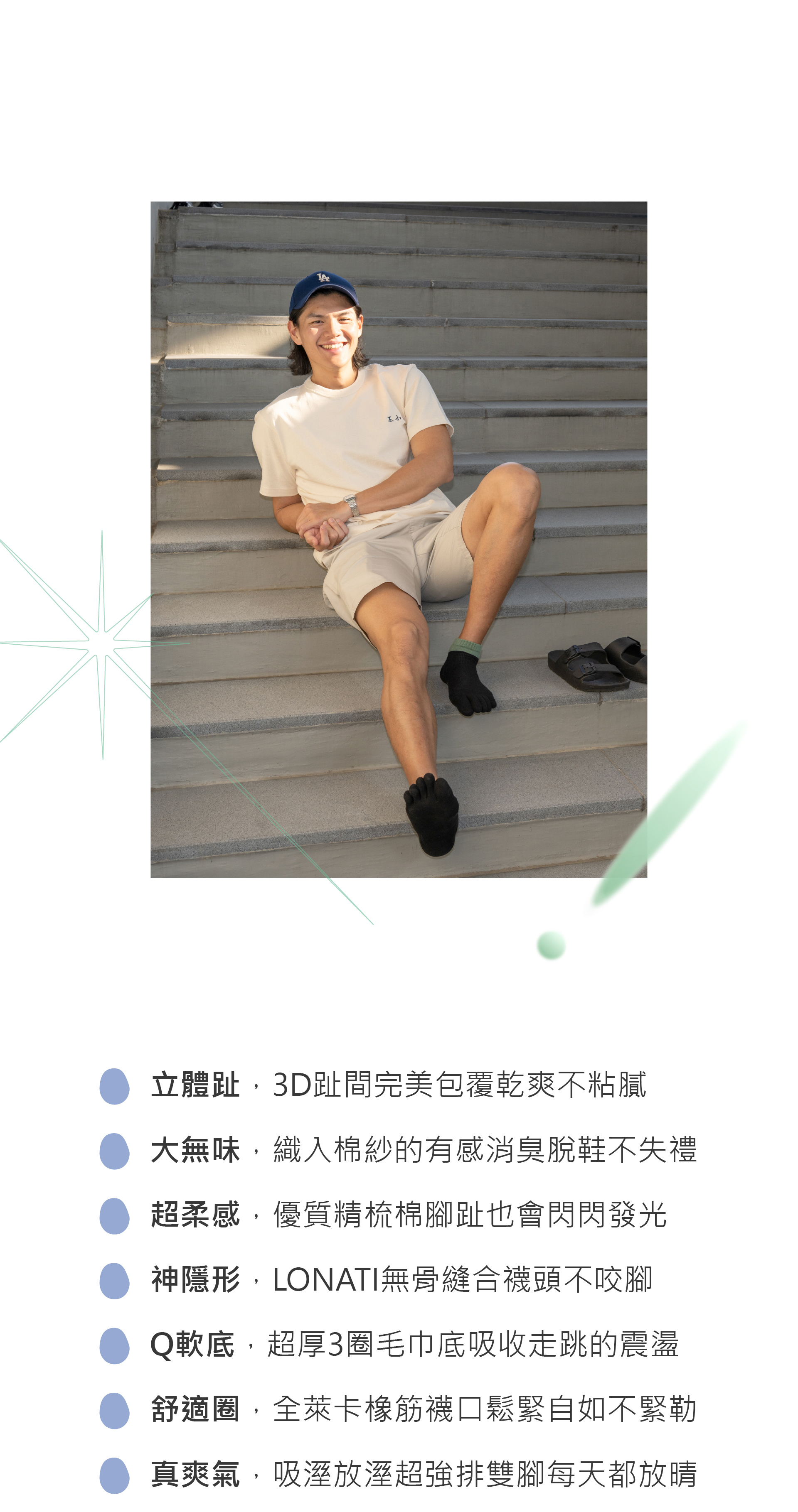 |立體趾,3D趾間完美包覆乾爽不粘膩